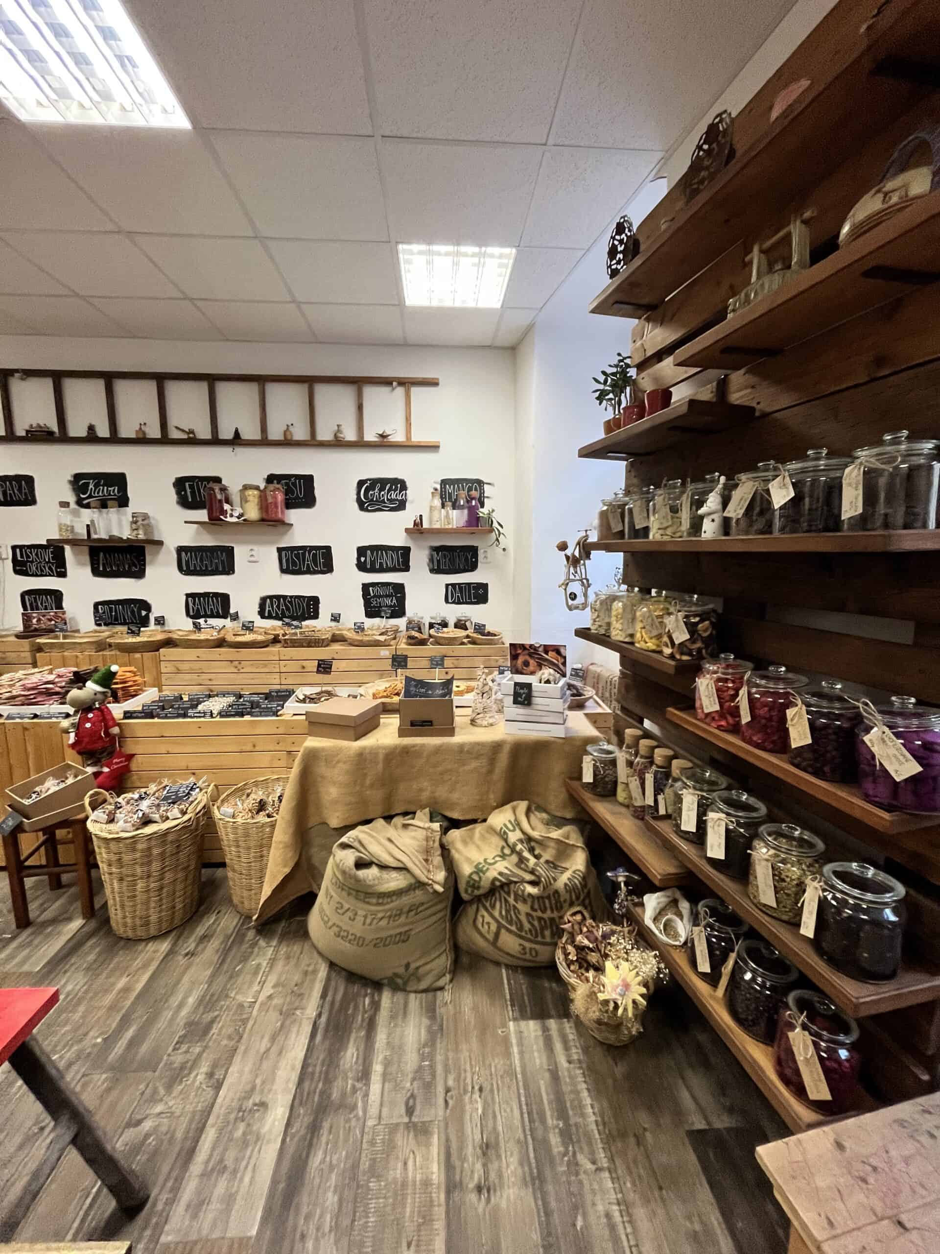 Ač se jedná především o prodejnu čokolády a oříšků, můžete zde zakoupit jak zrnkovou kávu, tak si nechat kávu či čokoládu uvařit.