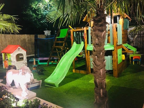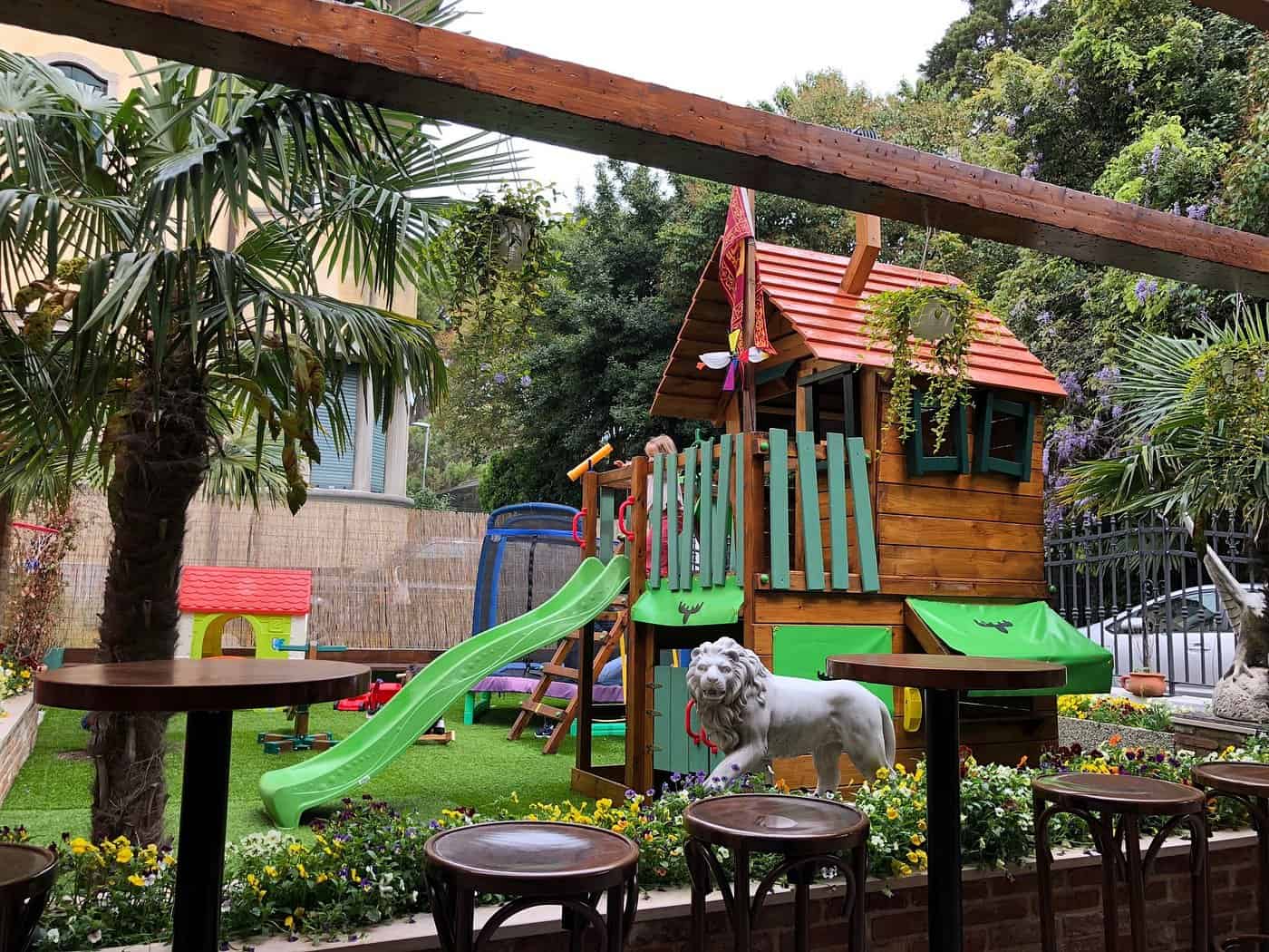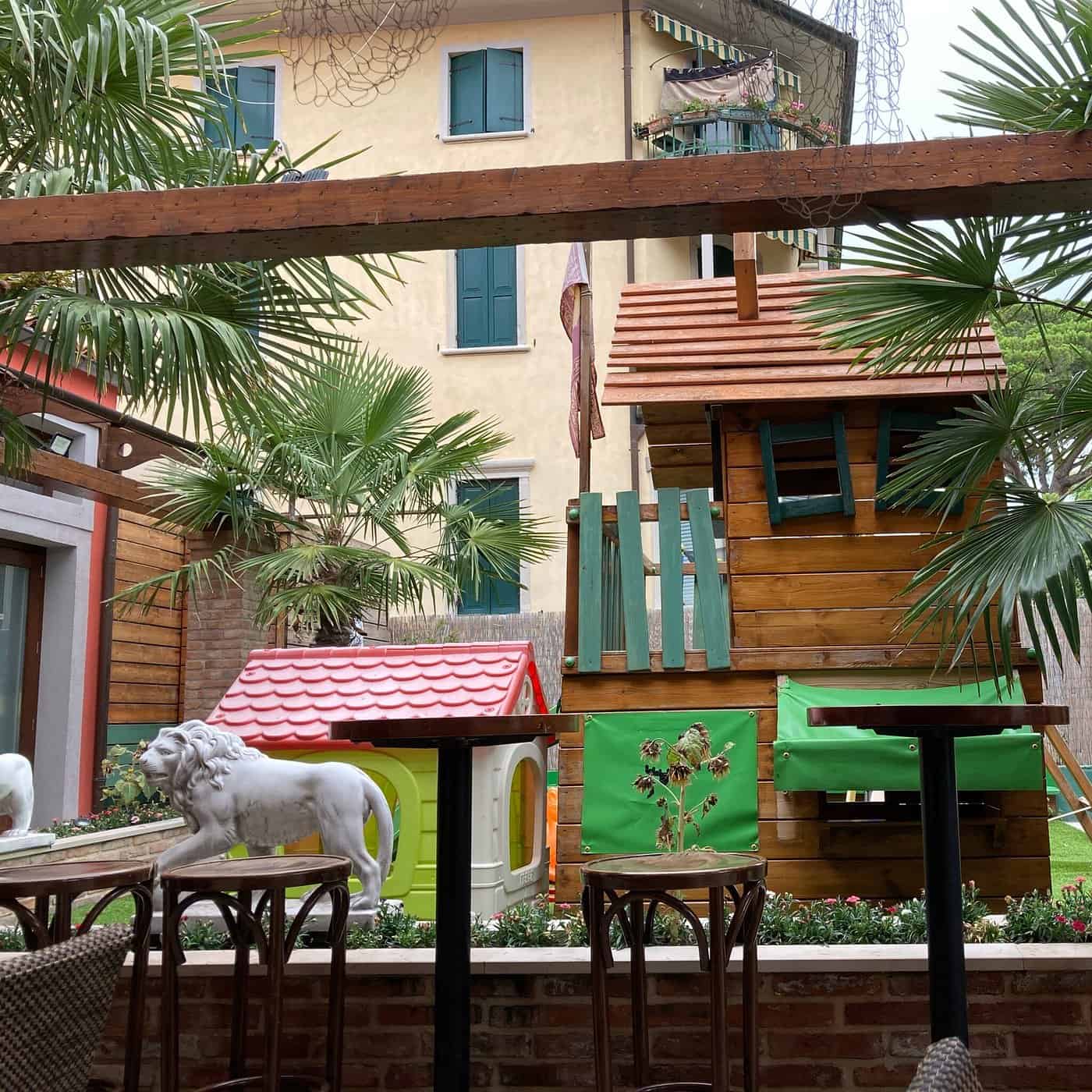 Pokud dorazíte do Benátek a budete a s dětmi podnikat výlety, na blízkém ostrově Lido Venezia, je tato restaurace s dětským hřištěm ve dvoře restaurace ideální zastávkou pro vás.
