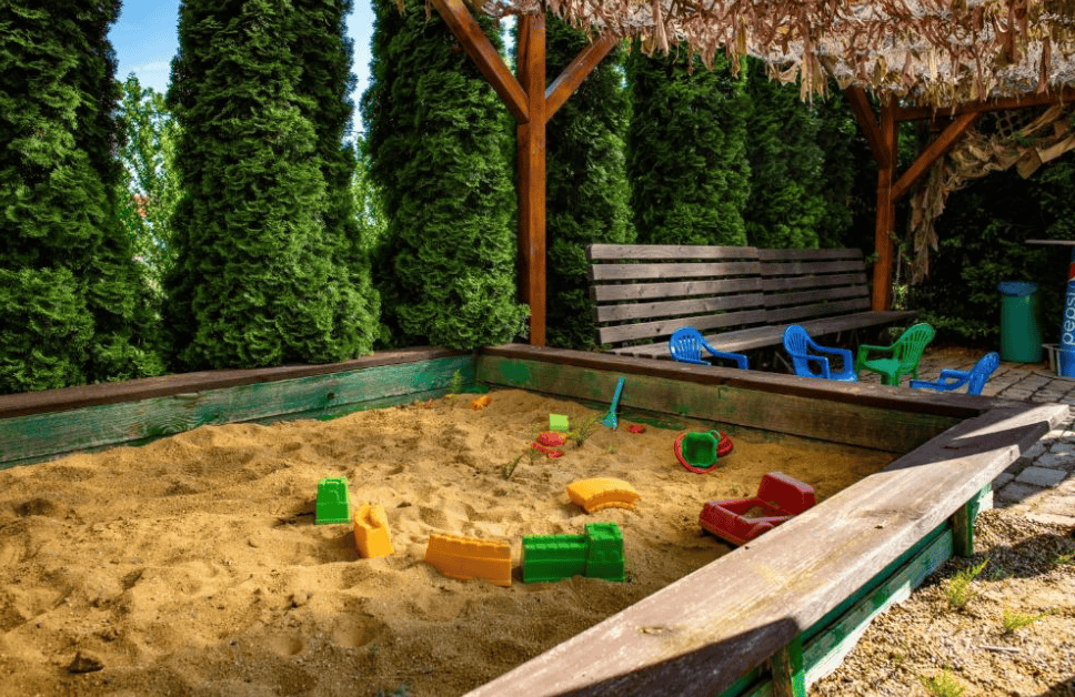 Venku na vás čeká bazén, jezírko s kapry, minigolf a také mnoho dětské hřiště s mnoha herními prvky. Pískoviště, houpačky, odrážedla nebo dřevěný domeček.