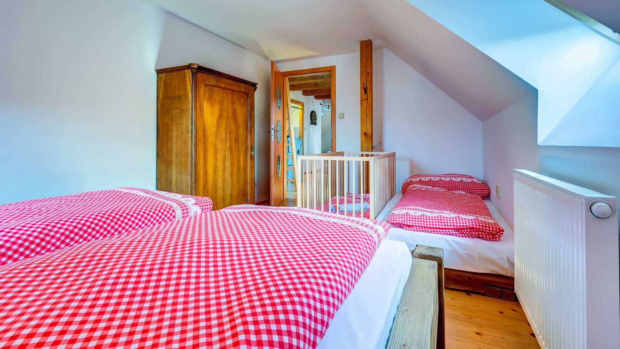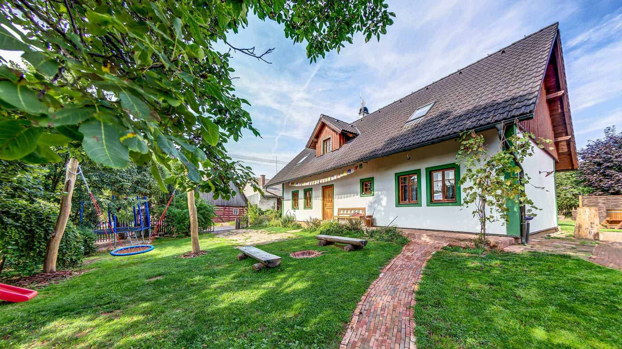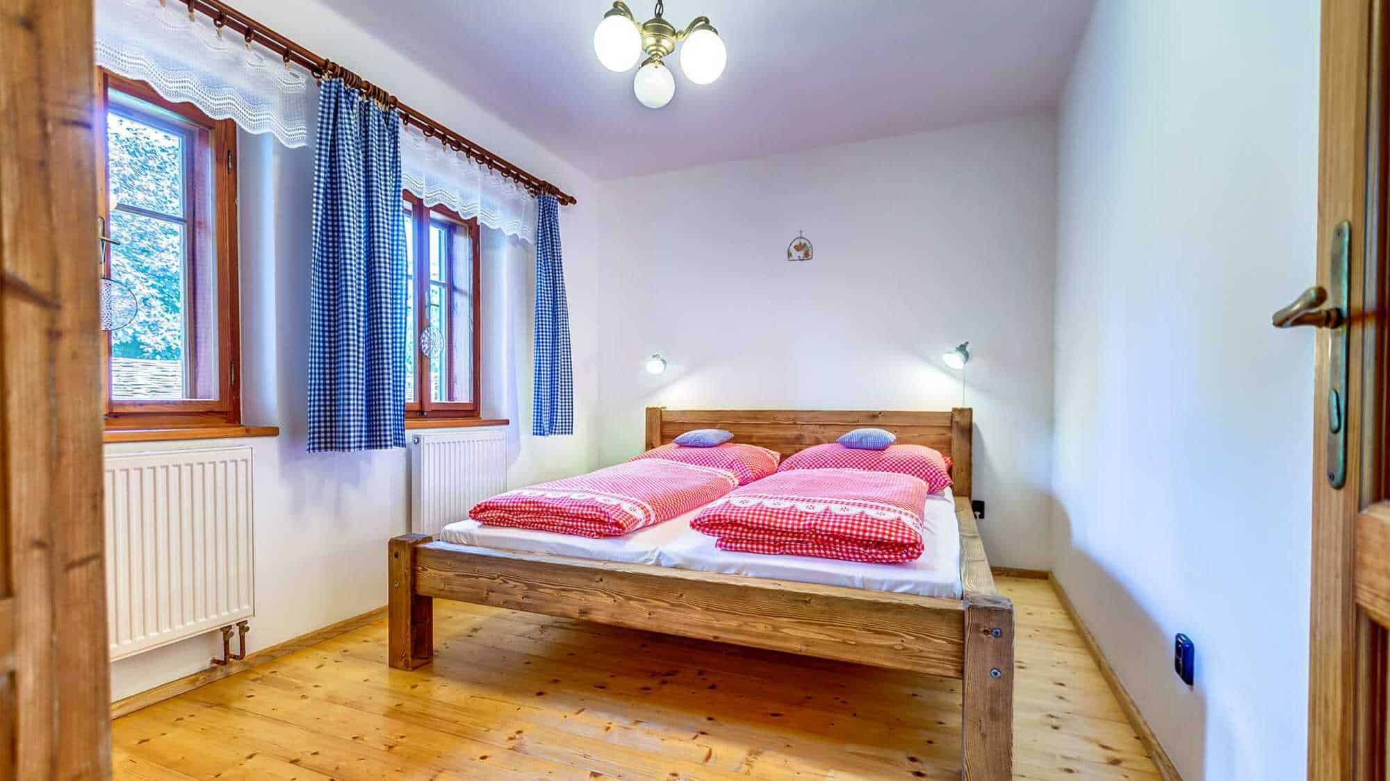 Chalupa nabízí 4 ložnice a dvě koupelny, takže se do ní vejde více rodin.