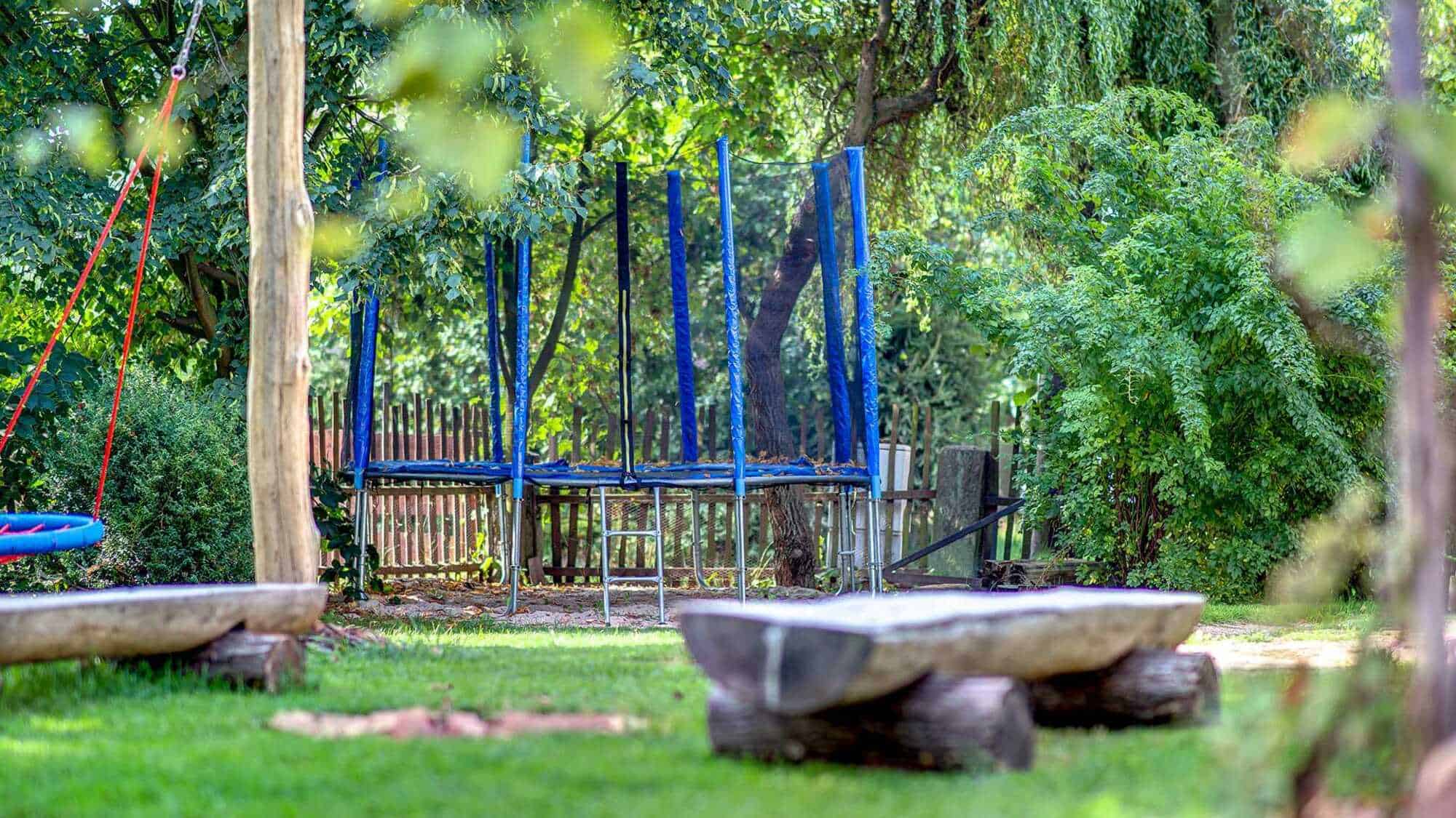 Na zahradě a dvorku na Vás čeká trampolína, houpačka nebo hřiště na basketball. Není zde bazén, ale můžete se ochladit v koupacím sudu nebo naopak prohřát v sauně.