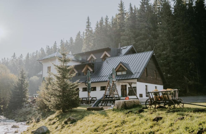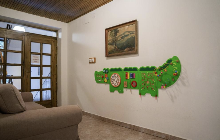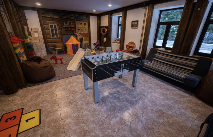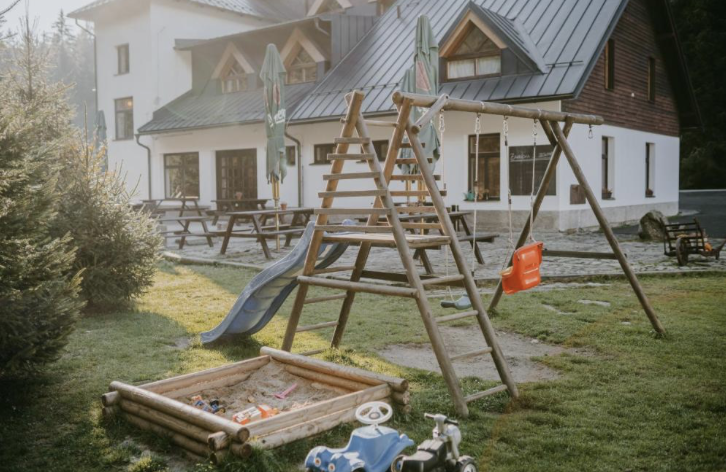 Na zahradě je pro děti dětské hřiště. Jen pozor na utíkací děti. Kolem zahrady protéká potok, což vám nenechá úplně vydechnout.