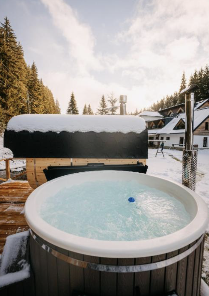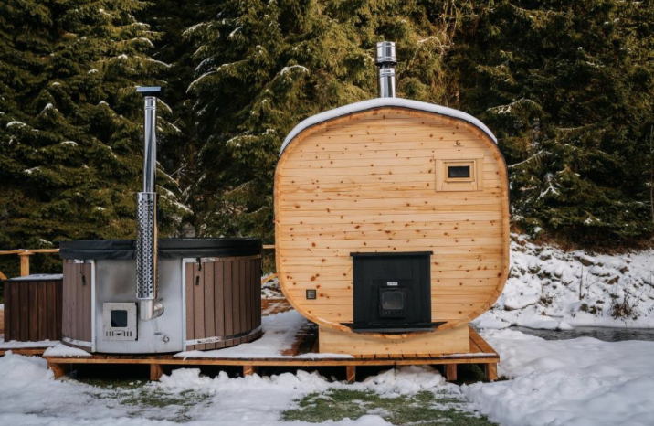 Odpočinek zajistí venkovní saunovací sud s vířivkou.