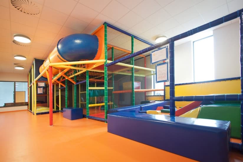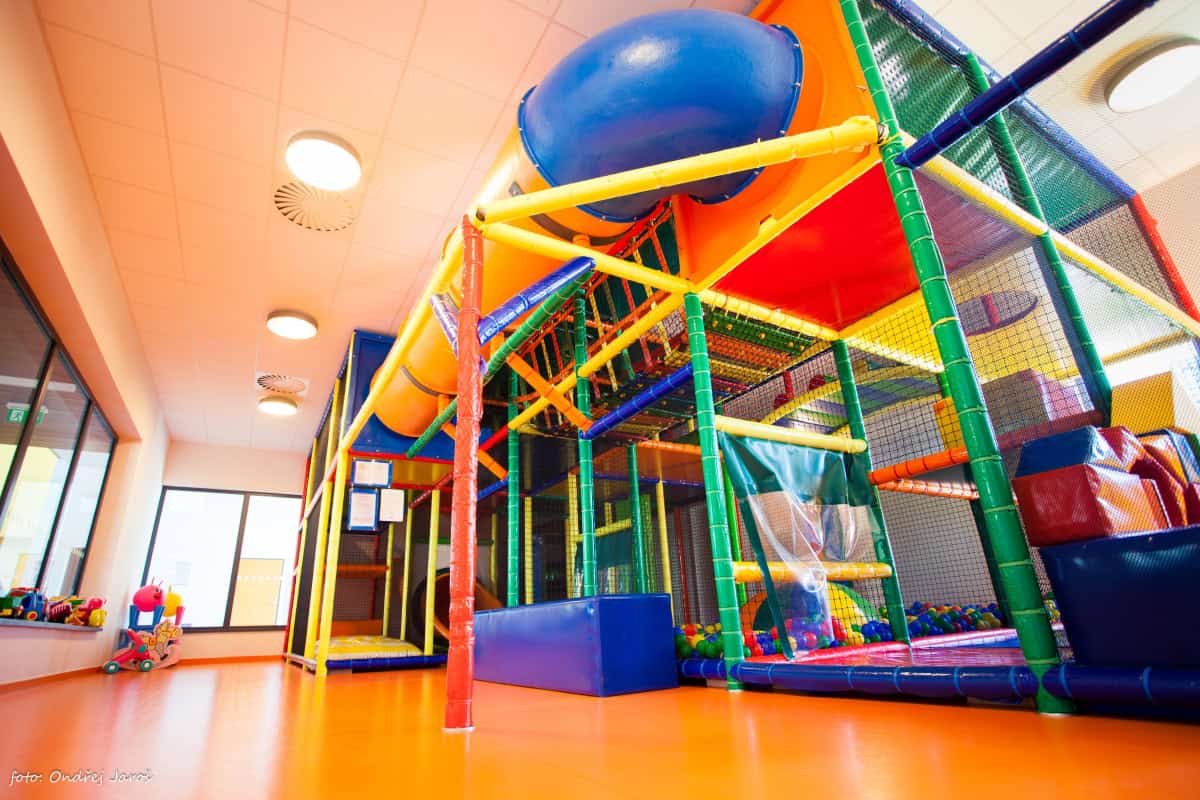 Ale ani malí sportovci nepřijdou zkrátka. Ve Fit4all na děti čeká vnitřní dětská herna s prolézačkami, houpačkami nebo skluzavkou do bazénku s míčky.