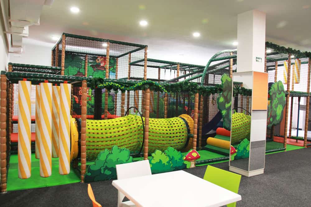 Pro větší děti je herní konstrukce s překážkami a prolézkami. Na děti většinou uvidíte u od stolů.