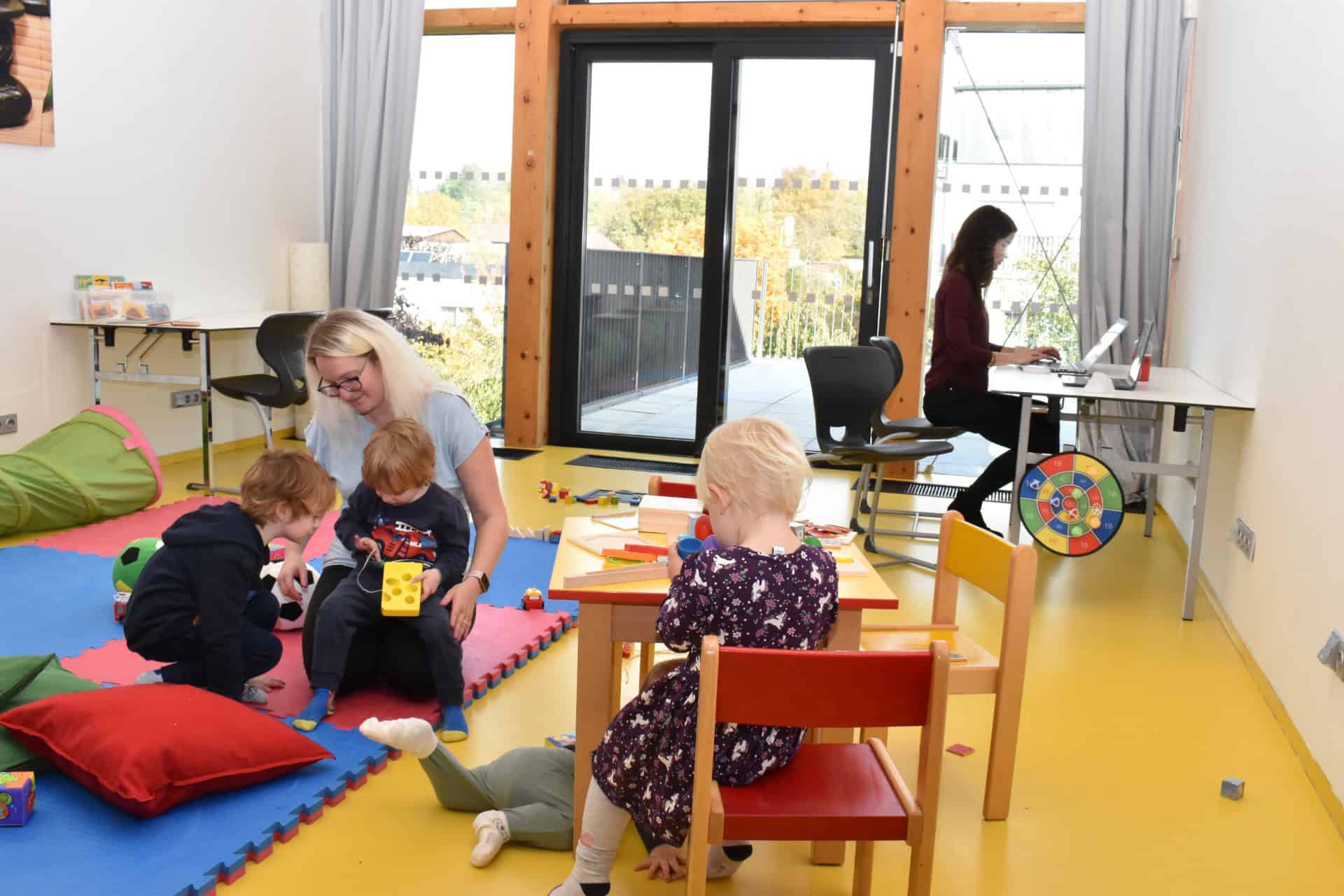 Máte zde tedy prostor, který vám umožní pracovat a buď nechat děti hrát si ve vaší blízkosti nebo na dohled v kavárně a o děti je profesionálně postaráno.
