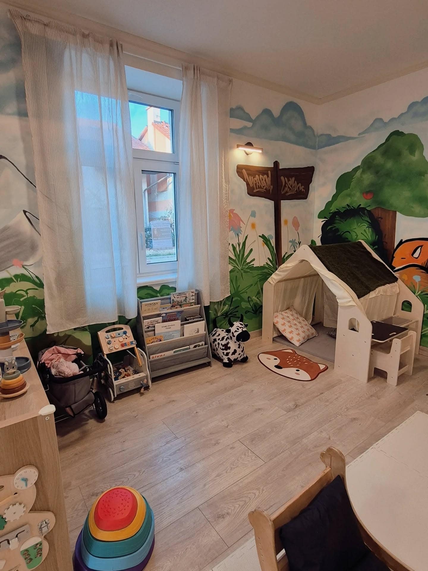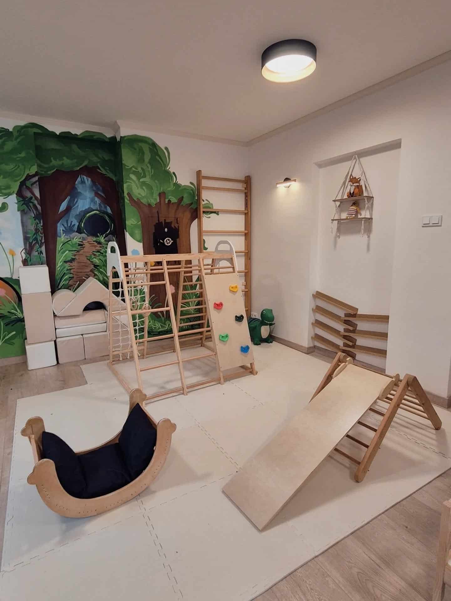 Hernička v lesním stylu nabízí herní prvky pro malé i větší děti a rodičům příjemné posezení na dohled svých dětí.