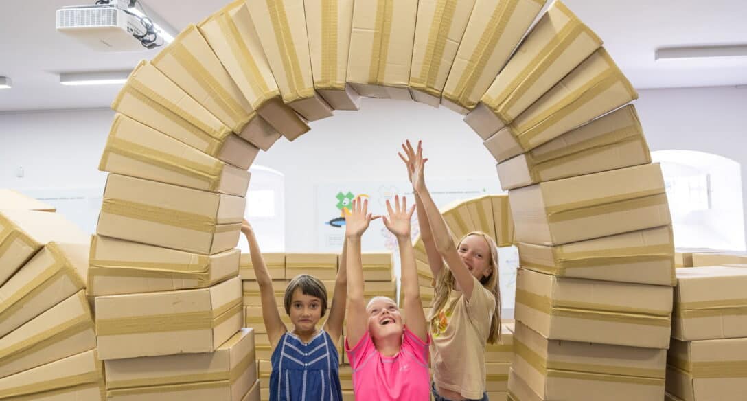 Budete zkoušet stavět i skládat se spoustou krabic. Můžete postavit valenou klenbu nebo sloupy a prakticky tak pochopit principy architektury.