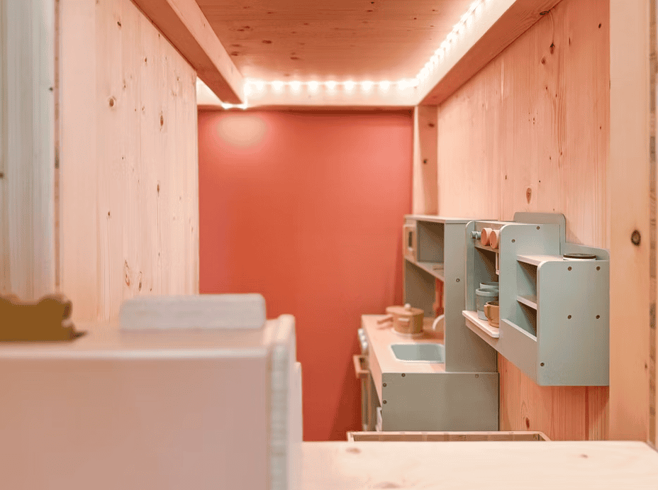 Kousek od náplavky na vás čeká hernička, která kromě vkusné zařízené hrací části s kuchyňkou, čtecím koutkem, nebo šatnou s kostýmy, má v suterénu ještě dětské kino. V kině průběžně promítají různé pohádky, nebo mají na tématické dny typu Halloween program i s tématickým promítáním. V herně můžete pro své děti uspořádat dětskou oslavu narozenin a dokonce nabízejí i hlídání ve večerních hodinách. Tzv. leave&dine umožni rodičům si zajít na večeři a strávit tak čas spolu a mezitím se postarají a zabaví ratolesti.