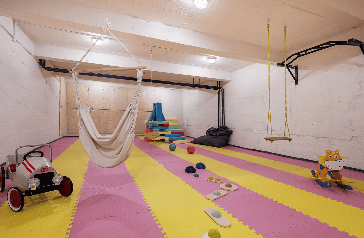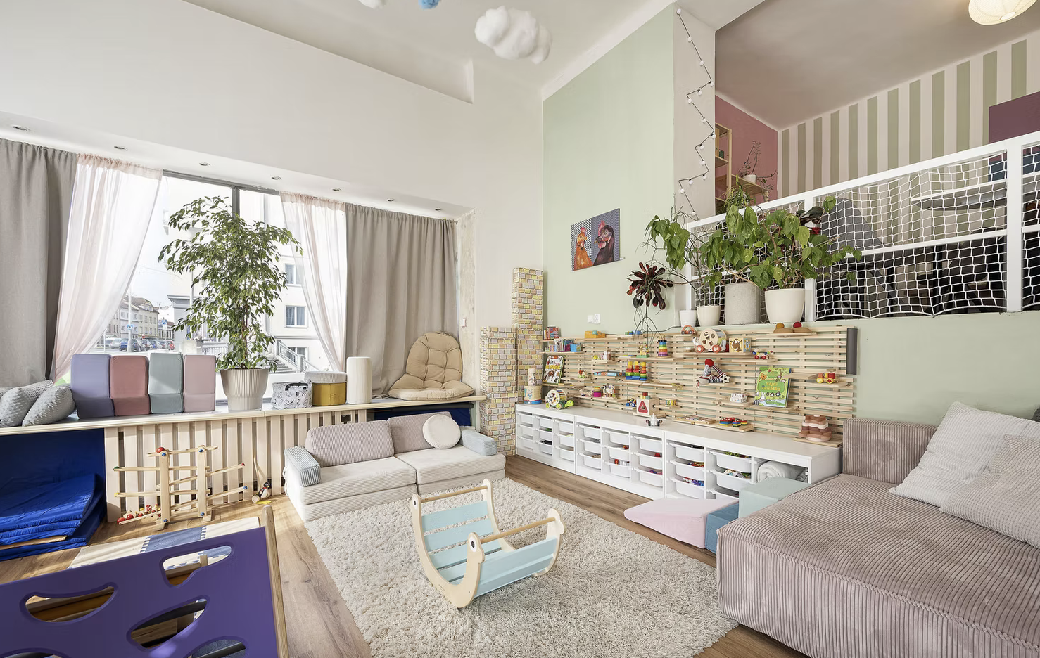 Je zde také prostor, který se nazývá "řádírna", kde se děti mohou pořádně vyblbnout. Jsou tam žíněnky, míče, houpačky nebo odrážedla.