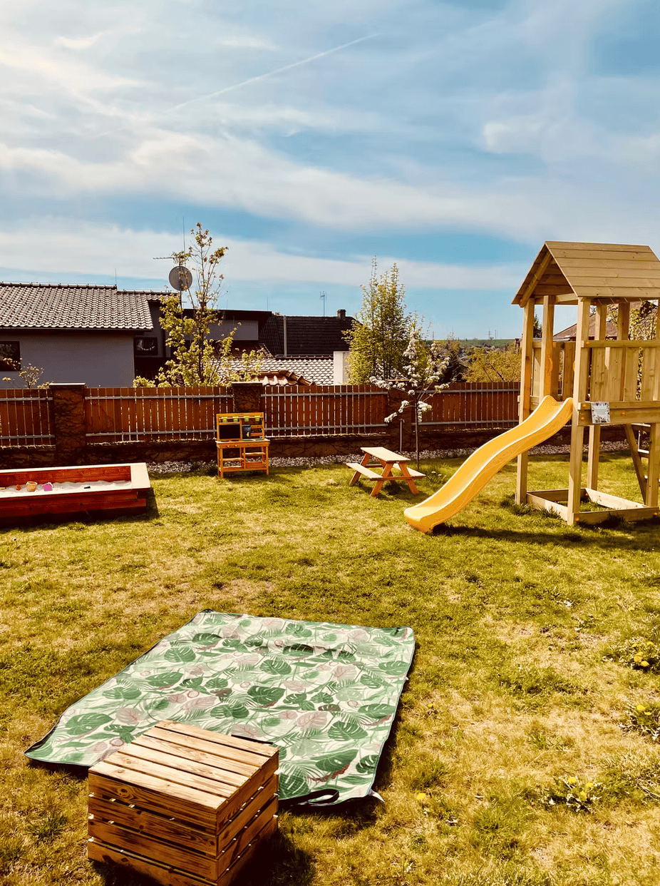 V případě pěkného počasí můžete využít venkovní hřiště, které je bezpečné i pro nejmenší.