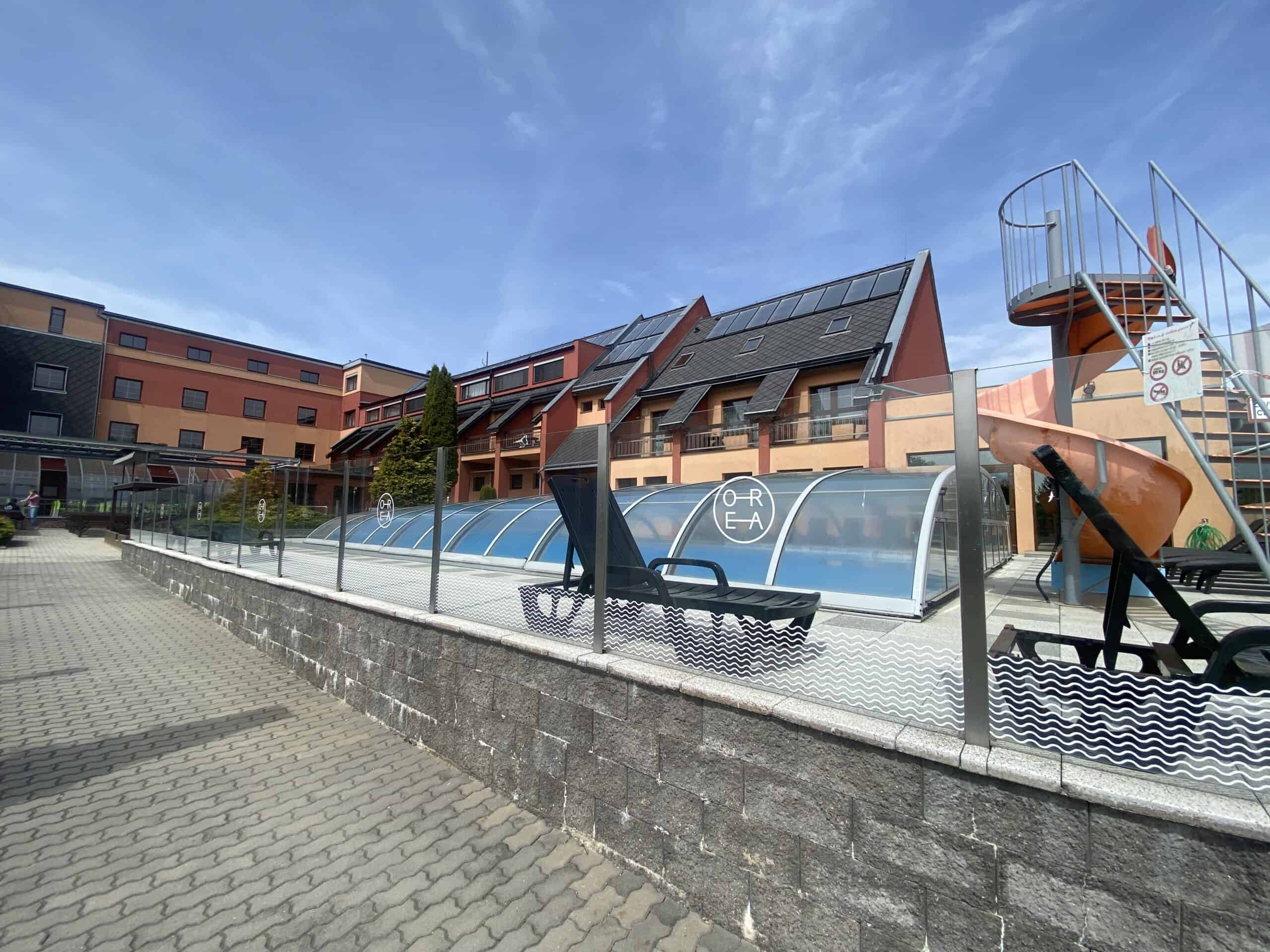 Hotel v krásné přírodě Moravského krasu, nedaleko Macochy. Stojí trošku na samotě na kopečku. Má krásný venkovní oplocený areál s hřišti, pískovištěm a miniz oo s oslíky a králíčky, které si děti mohou pohladit. Hned u recepce je situovaná nově zrekonstruovaná herna. Tato Orea je skvělá volba pro letní období, protože má velký venkovní bazén s mini tobogánem. Ale je tu i vnitřní bazén s wellness. Behěm hlavních sezón tu probíhá animační program s liškou Eliškou.