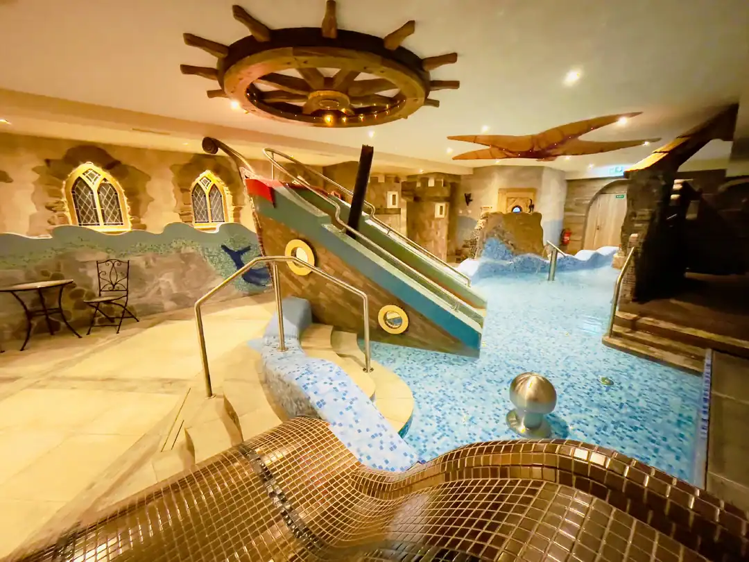 Mají nádherné wellness s dětským světem. Kde je brouzdalištěm s vrakem, ze kterého vede skluzavka a venku pak i venkovní bazén, taktéž s lodí se skluzavkami. U restaurace je situovaná herna.