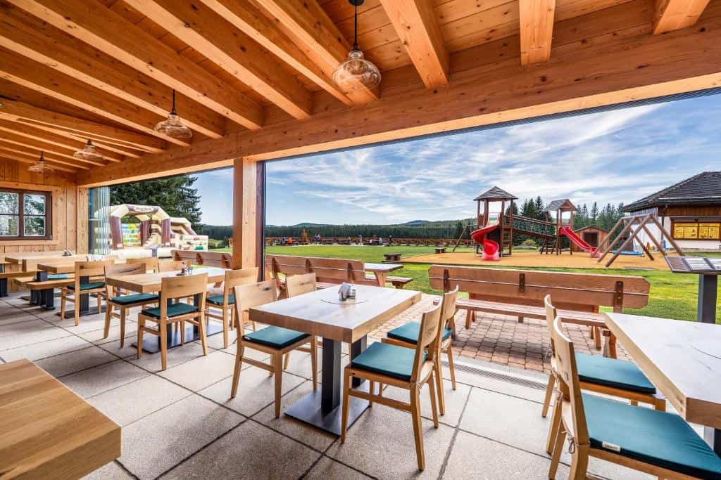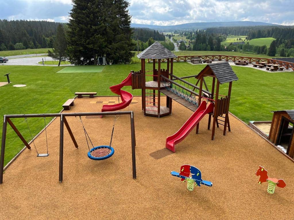 K dispozici je prostorné venkovní hřiště za každého počasí. Na to je vidět přímo z terasy, takže budete mít děti pod dohledem i během oběda.  V horším počasí můžete vyzkoušet dětský koutek, v němž se nachází základní herní vybavení včetně kostiček, knih a jiných dětských her. Jistě vám tento koutek přijde vhod.
