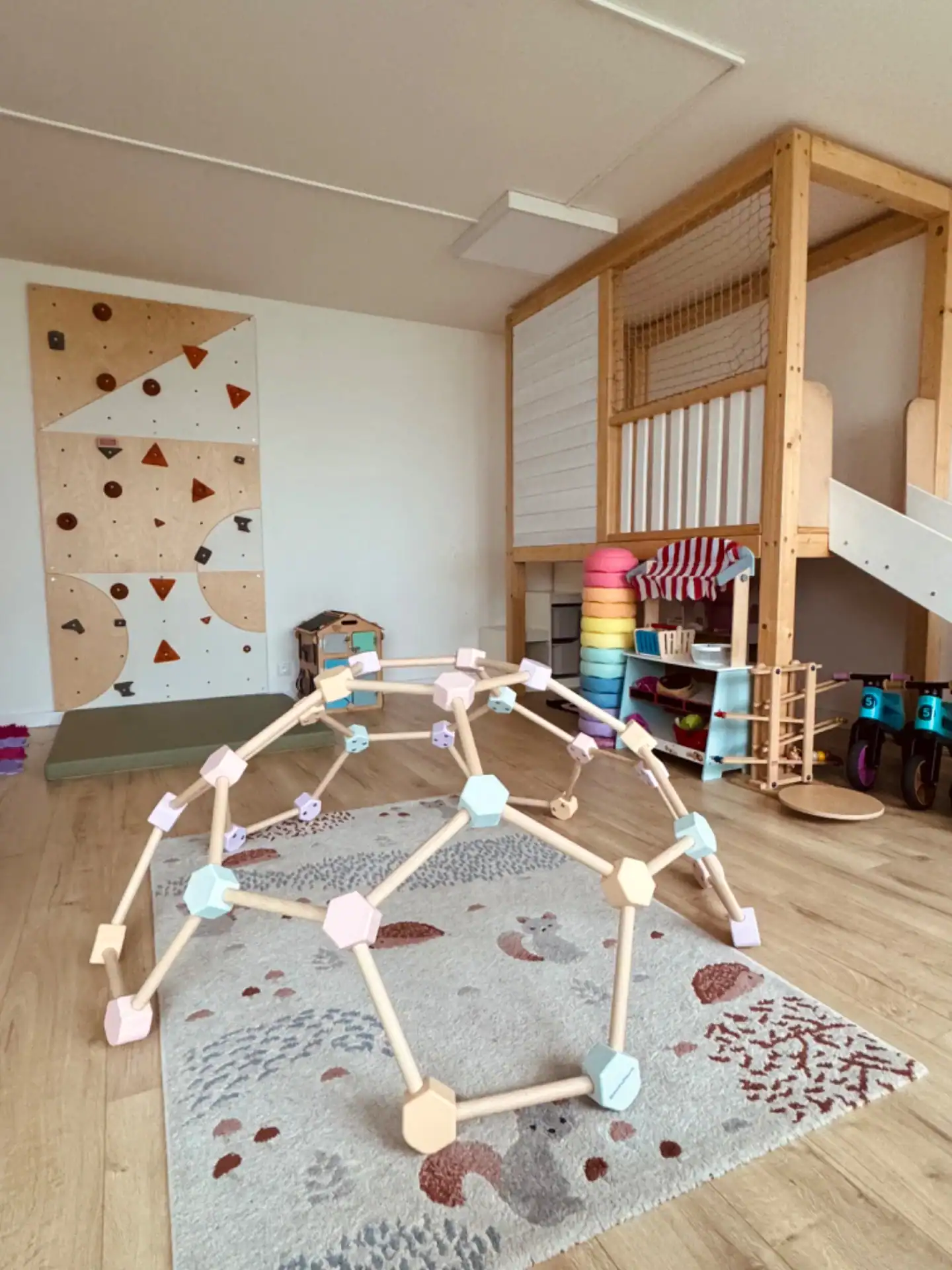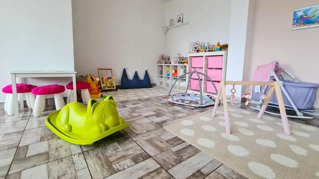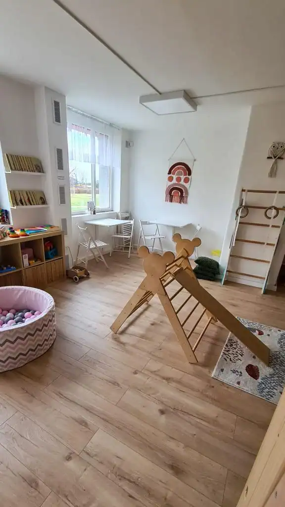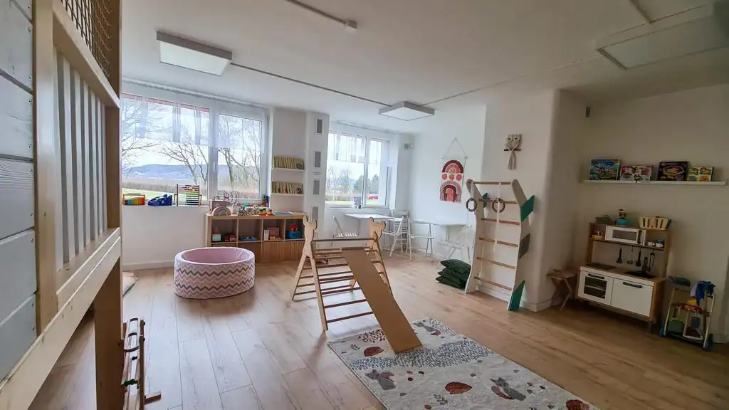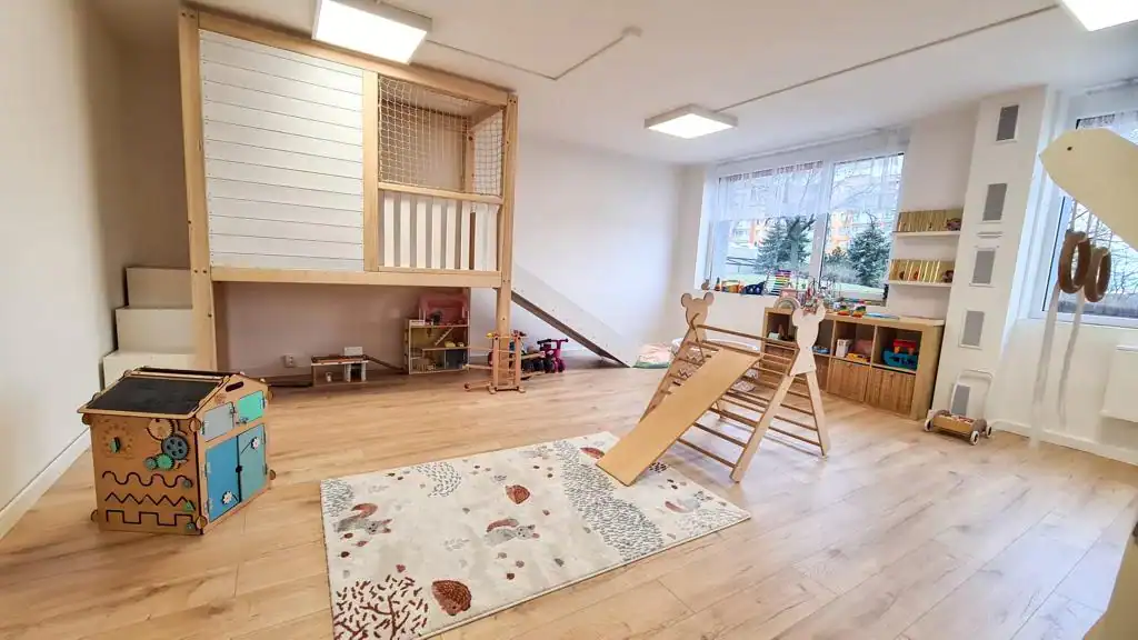 Na děti vidíte přímo od stolů a v prostoru najdete zákoutí pro větší i menší děti, pro něž potřebujete hlavně koberec a nějaké hrazdičky.