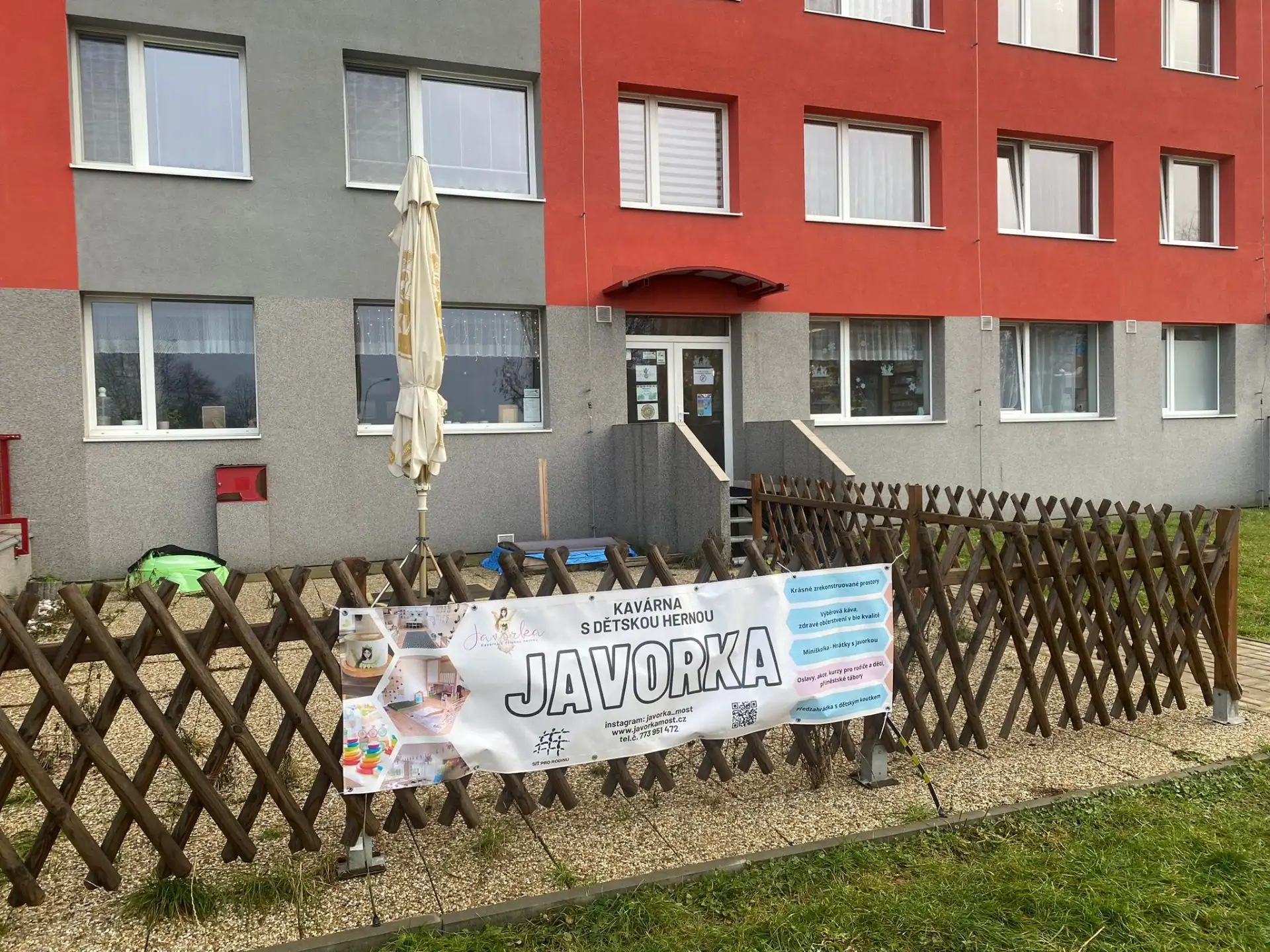 Kavárna a hernička Javorka je naproti mosteckému známému Aquadromu.