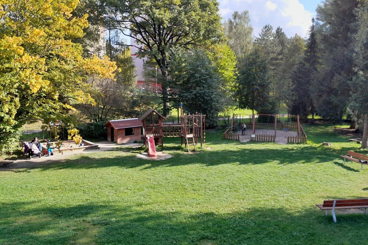 V případě hezkého počasí je k dispozici zahrada s prolézačkami. Zahrada je také využívána na komunitní akce, stále se tu něco děje.
