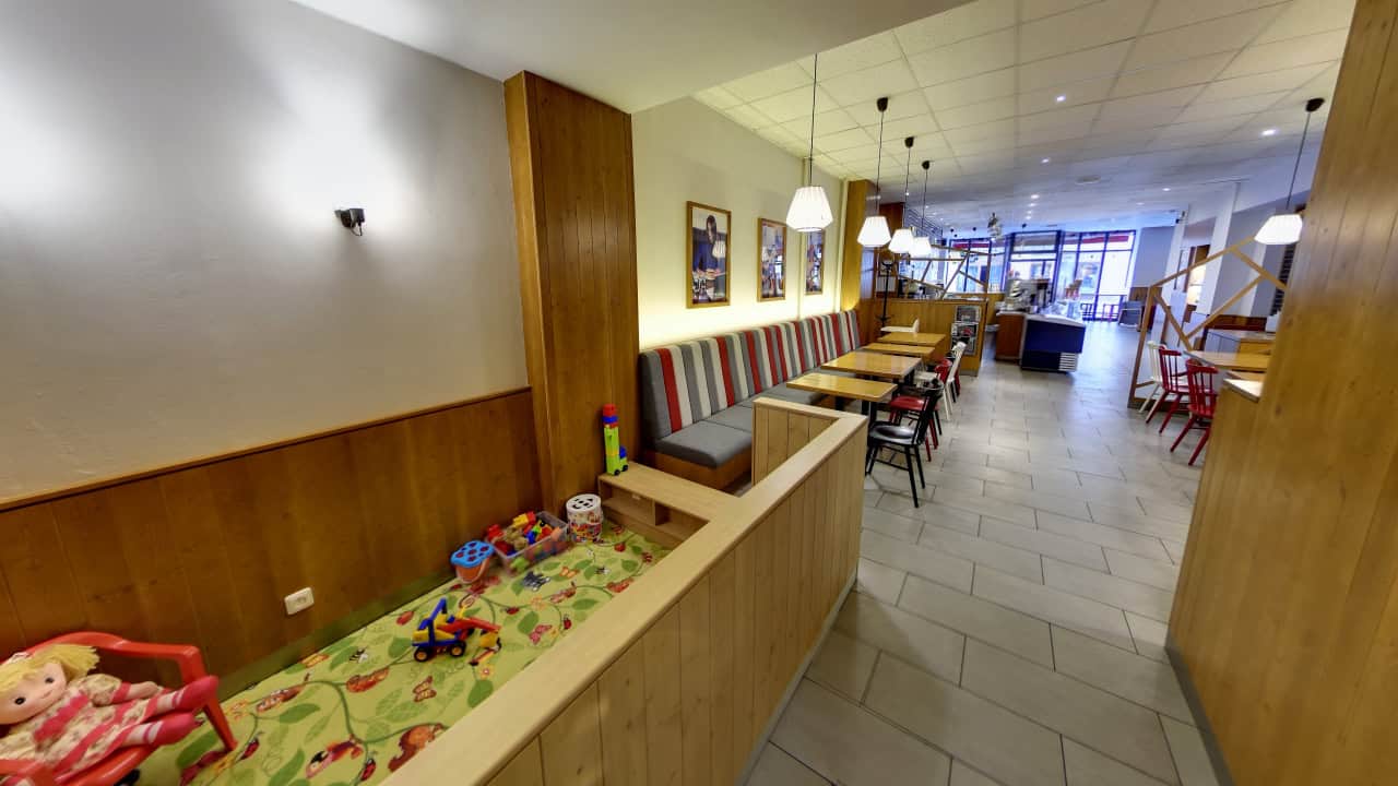 Děti máte snadno na dohled, i malého lezce si snadno ohlídáte. Ač vybavení není příliš bohaté, na kávu s dortem to bohatě stačí.