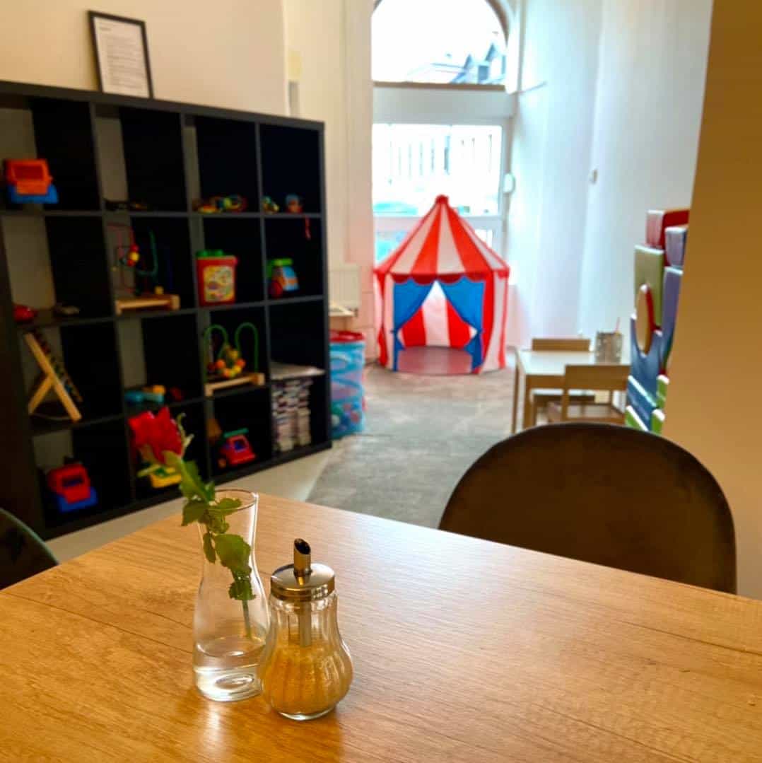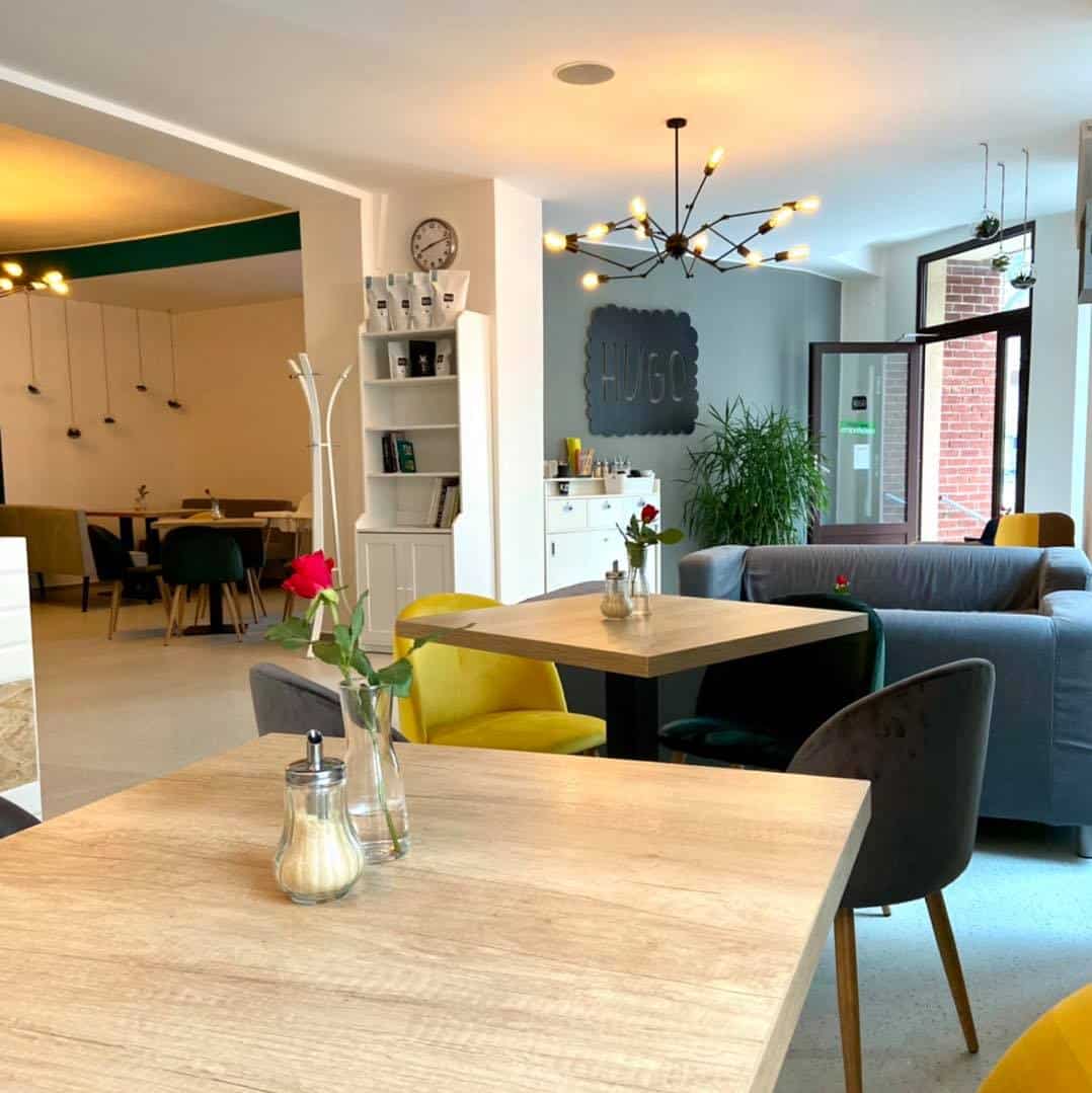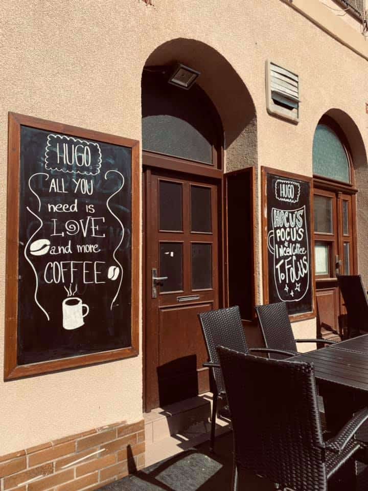 Příjemná kavárna HUGO s výběrovou kávou a příjemným dětským koutkem. Koutek je v rohu místnosti - v prosklené části. Máte tedy děti hezky na dohled a nikam vám neproklouznou.