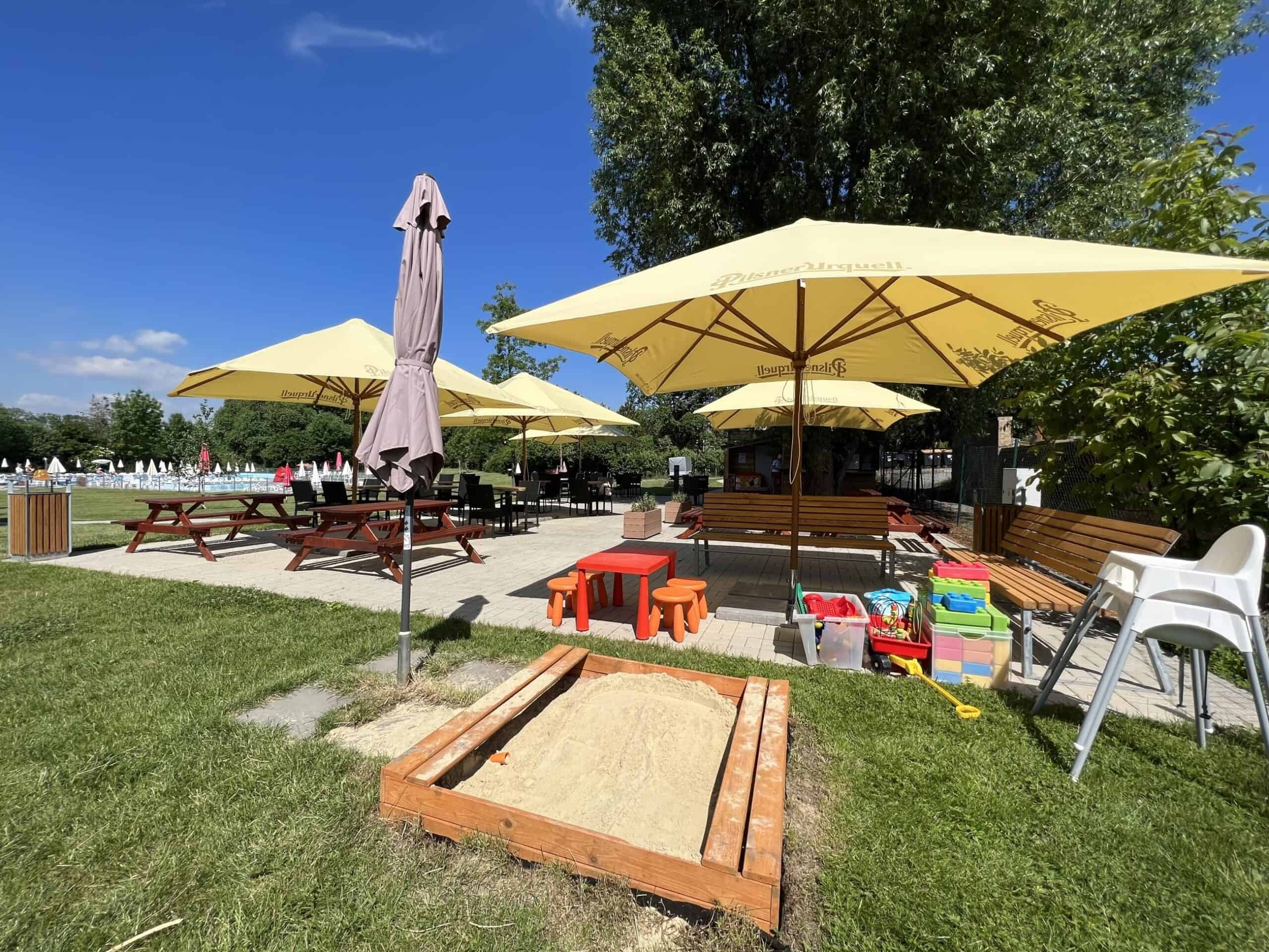 Na hranici Prahy v Kolovratech najdete malé a příjemné koupaliště s velkým bazeném, brouzdalištěm pro prcky s malou skluzavkou a dokonce i saunou. V horní části je klidová zóna s pískem a hřištěm, kam si lehají spíše rodiny s miminky. Plus nově přibyl i velký stan, pro ty co potřebují 100% stín. K dispozici je občerstvení, kde u stolů je i malé pískoviště s domečkem.
