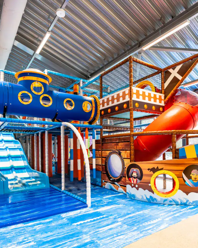 Čeká na vás vodní svět, kde si užijete nejen bazén, ale také tobogán a další herní vodní prvky jako prolézačky či houpací síť nad vodou. Pro malé děti je zde dětský bazén se skluzavkou.