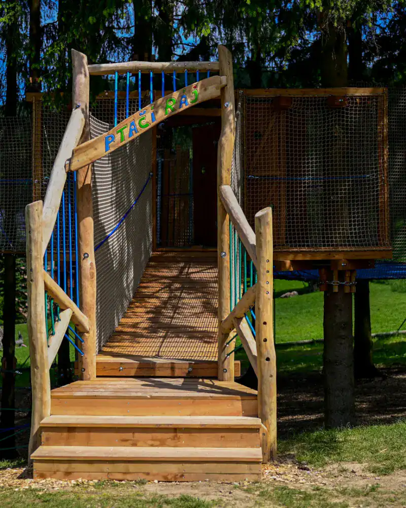 Součástí zábavy je Ptačí ráj. V korunách stromů si děti mohou i spolu s rodiči zařádit na čerstvém vzduchu.