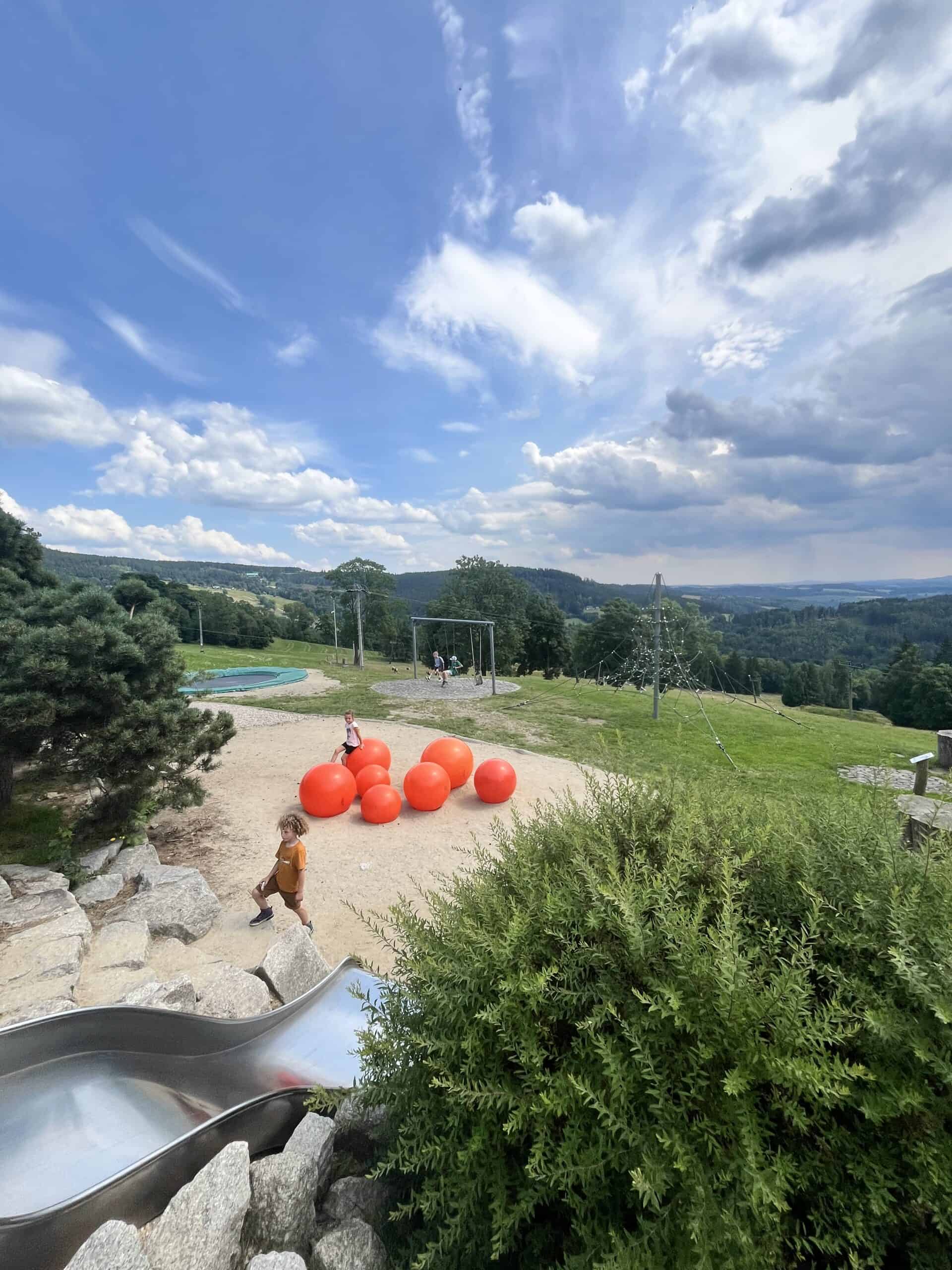 V Jizerských horách navštivte tento minipivovar, který nabízí venkovní vyžití pro děti. Hřiště není nijak oplocené, nabízí však dostatek prostoru ke hraní všem věkovým skupinám. U restaurace se nachází nejen Cimrmanova rozhledna, ale také volně přístupná kuličkodráha. Uvnitř restaurace není sice dětský koutek, můžete však posedět v místnosti, která je celkem separovaná a k dispozici máte dokonce pár hraček a pastelky s omalovánkami.