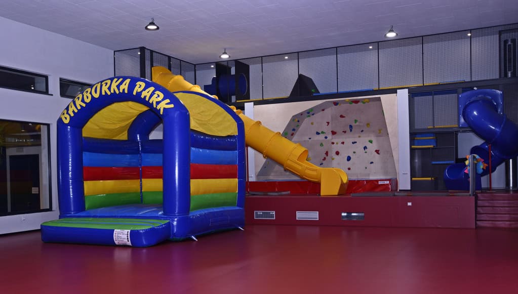 Za špatného počasí můžete využít vnitřní dětskou hernu nebo si zalézt na stěně či zaskákat v nafukovacím hradu.
