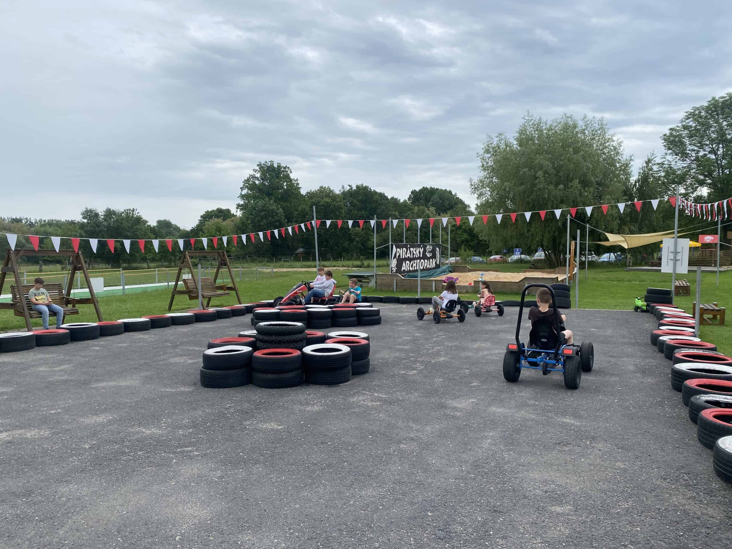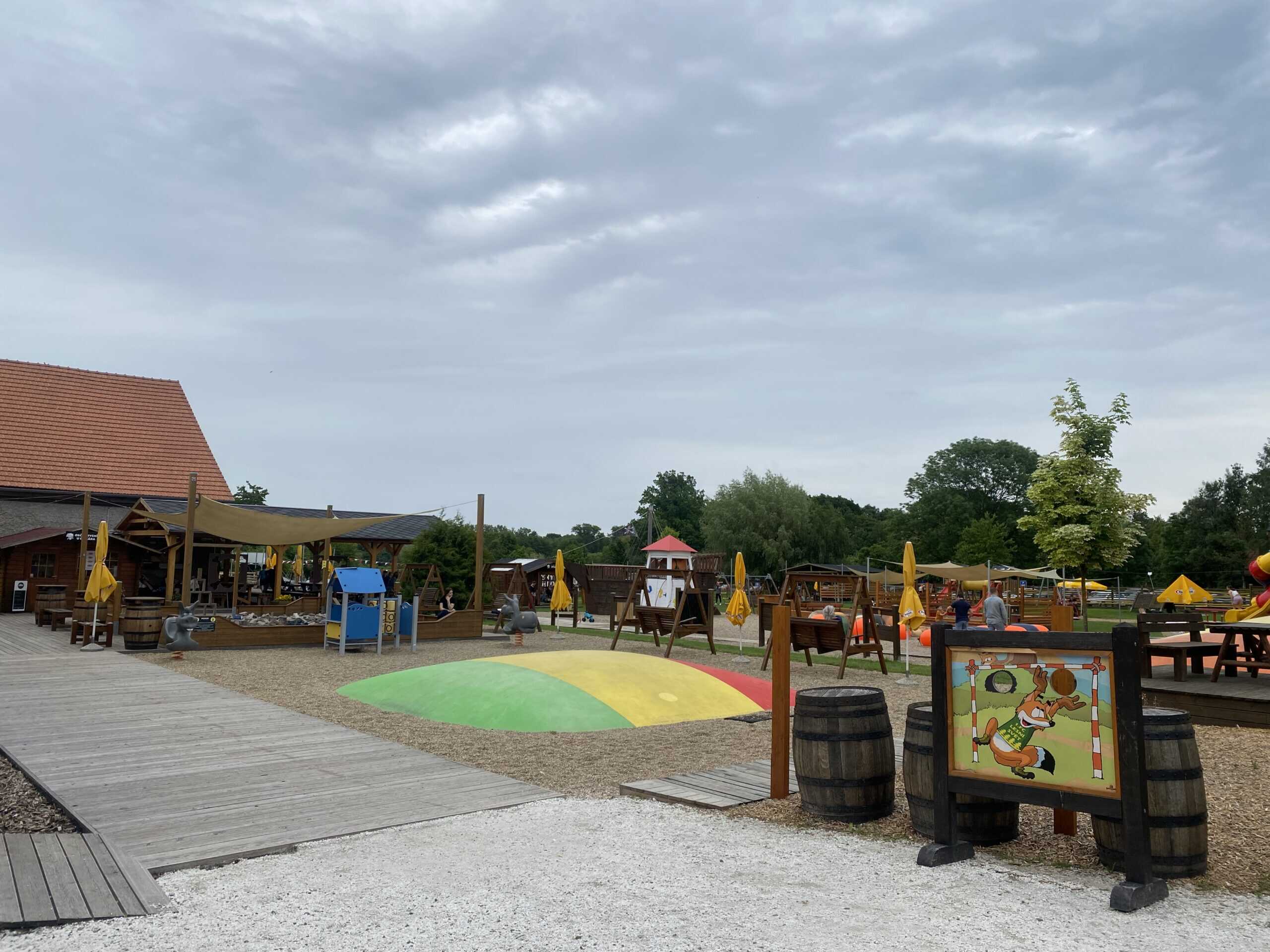 Menší dětský zábavní park s mnoho prolézacími prvky, bublinou na skákání, šlapacími kárami, tubingem, ale i malým vodním světem. Před deštěm je možné se schovat do restaurace, kde na děti čeká velký dětský koutek až do stropu. Zabaví se i ti menší při stavění z dřevěných kvádrů, při hrabání dinosara na "pískovišti", nebo prostě na houpačkách. Během sezóny pořádají několik akcí s programem a občas jsou tam i tvořivé dílničky. Oběd si můžete dát uvnitř v restuarci, nebo je venku několik stánku s velkým zastíněným sezením. Parkování zdarma hned vedle areálu. Otevřeno mají každý den, vyjma pondělí.