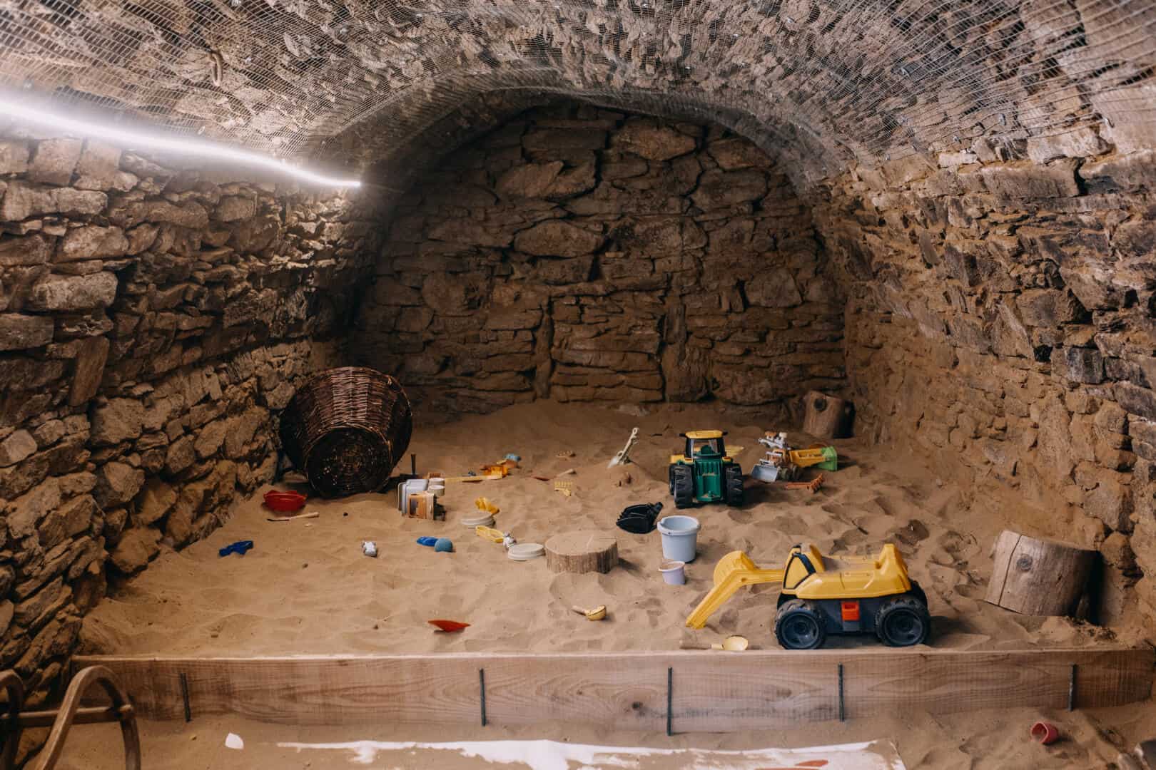 Dobrodružně působí také jeskyně, v níž je veliké kryté pískoviště.