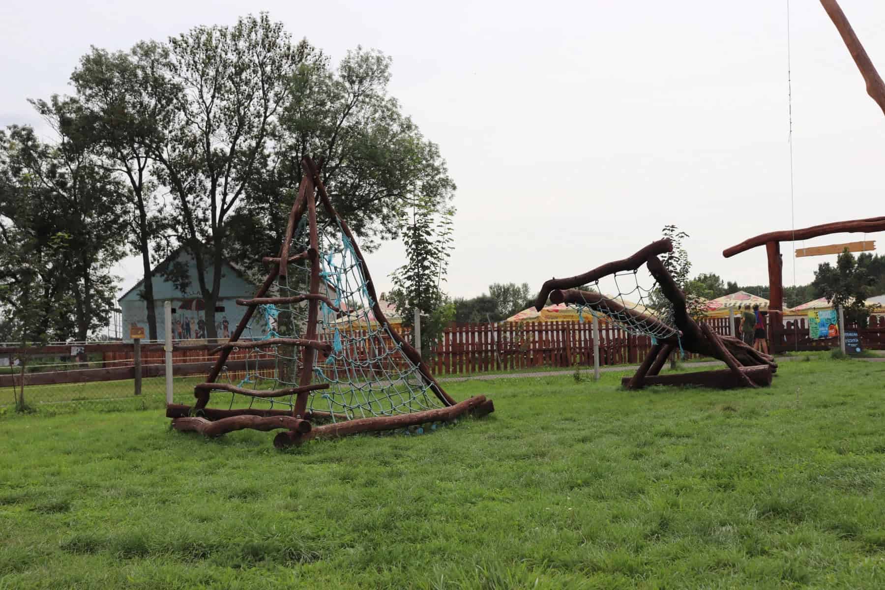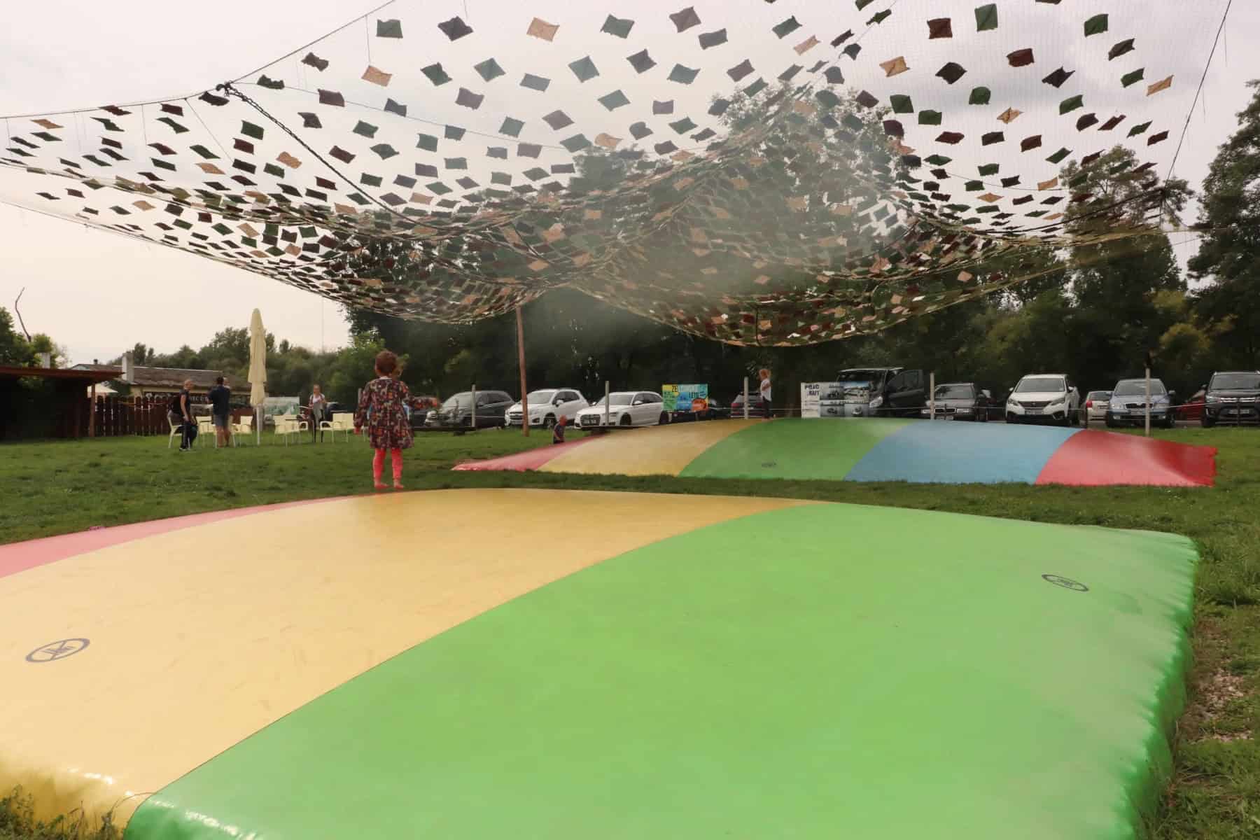 Když zrovna není nálada na zvířátka, u vchodu jsou nafukovací skákací bubliny, stíněné sítěmi proti slunci, kmenová konstrukce na prolézání. Plus u koní, ještě houpačka a dřevěná mašinka. Vzadu u pizzerie, jsou ještě vyvýšené dřevěné domečky s žebříky, které na mě působily buď nedodělaně, nebo na opak před opravou. Protože v každém byl vždy velký otvor, ne nijak extra chráněn, jako by tam chyběla skluzavka. Větší děti si v nich polezou, poschovávají atd., ale úplné mrně bych se tam bála pustit samotné. Vaše unavené nohy jistě ocení bosonohou stezku, která je také za pizzerií.